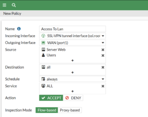 در این قسمت نوع SSL-VPN را تعریف کنید.
